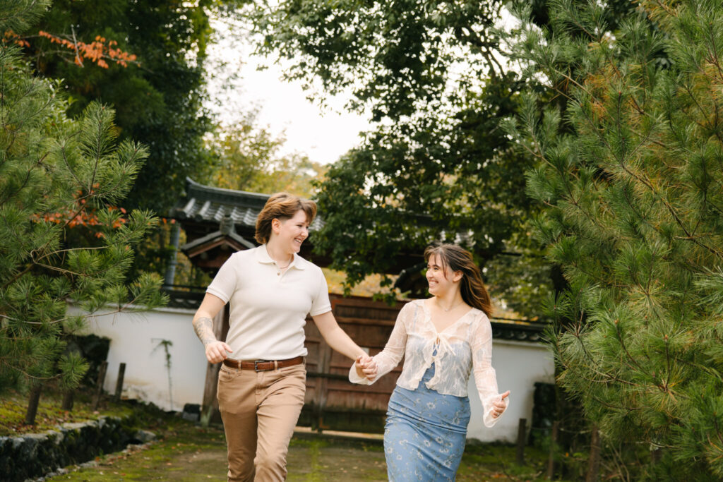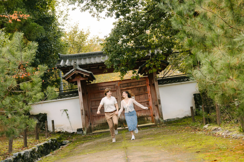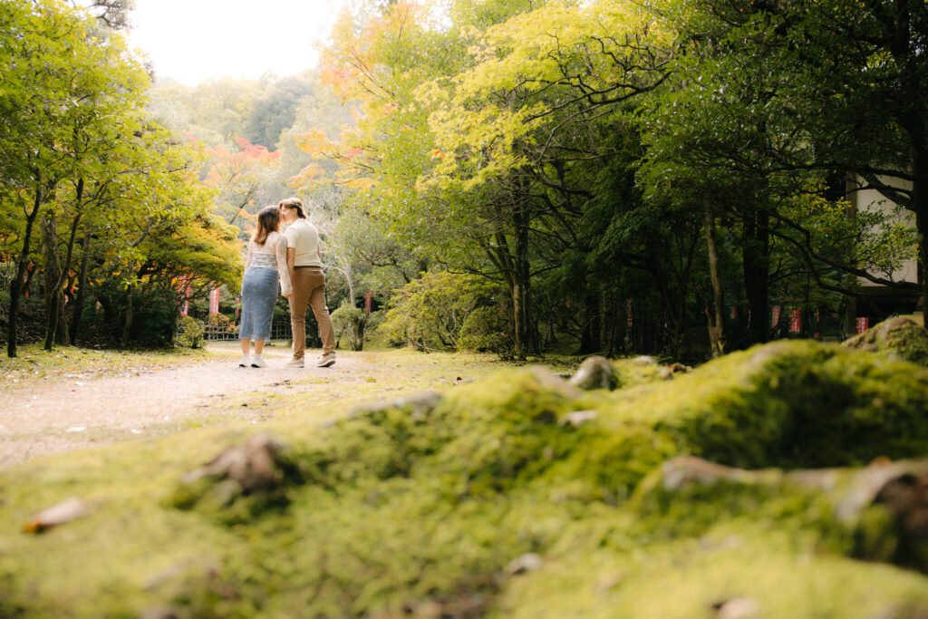 At the end of September, I had the honor of photographing a surprise proposal in Kyoto. The couple planned to propose in the evening at a beautiful Japanese garden, so I arrived early to prepare and wait for them. Since it was a bit later in the day, the garden was less crowded, which made the photo shoot go smoothly.