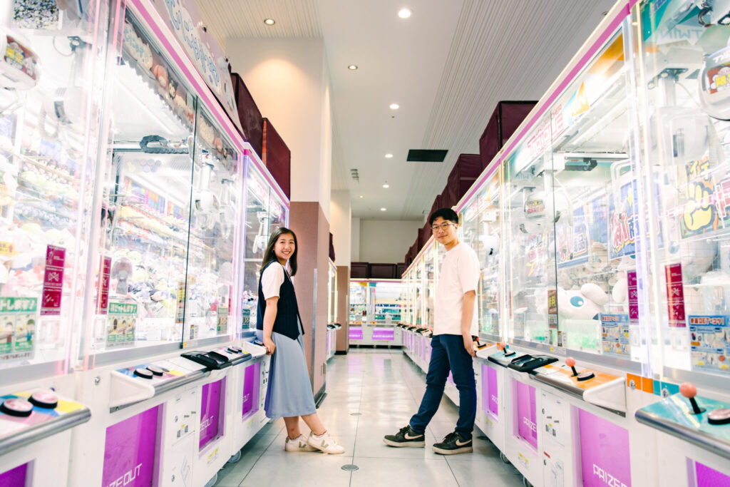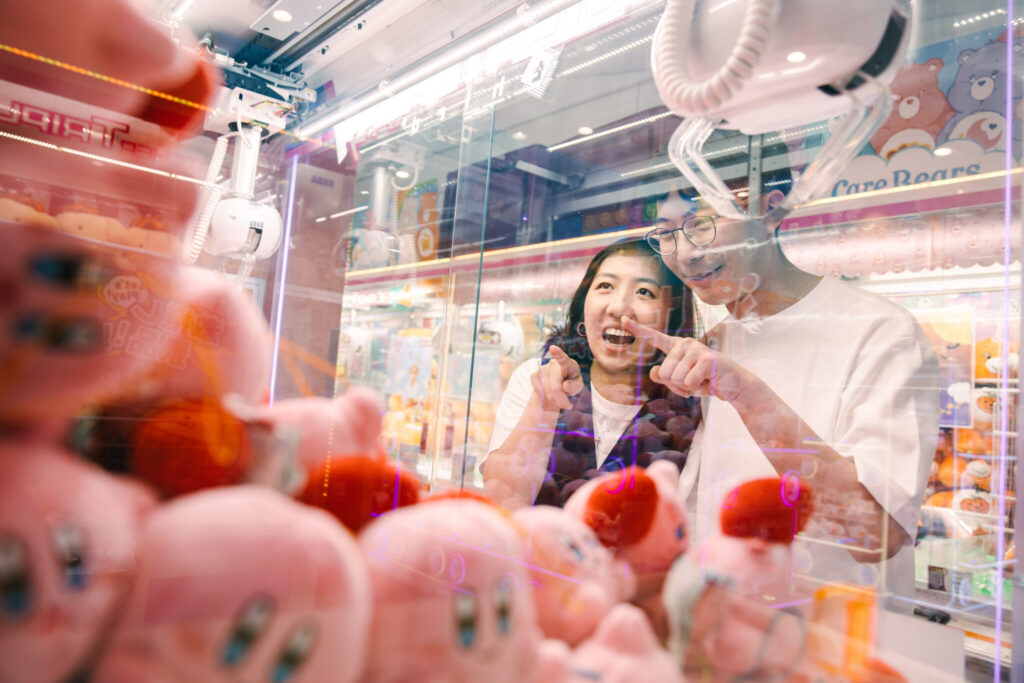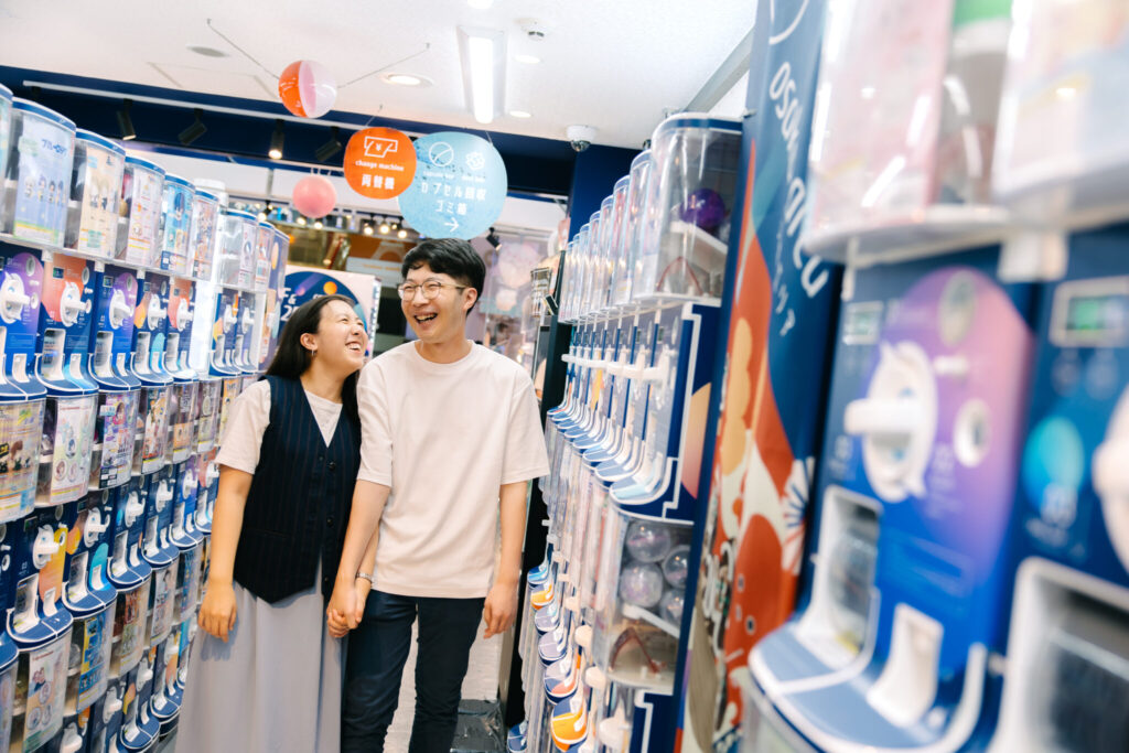 The couple was exactly as I imagined—bright, cheerful, and fun to work with. We started our session at a capsule toy shop, one of their requests. I captured them choosing toys and walking around the shop, enjoying the vibrant atmosphere. I also found a Dragon Ball capsule toy I had been wanting, and they were genuinely excited with me, treating me like a friend.