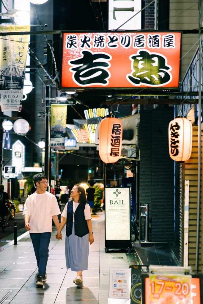 I had an amazing night photoshoot with a wonderful couple in Osaka. From our initial messages, I could tell they were very friendly and enthusiastic about Japanese culture. They even shared detailed ideas of the types of photos they wanted beforehand, which helped me plan the perfect shooting route for them.