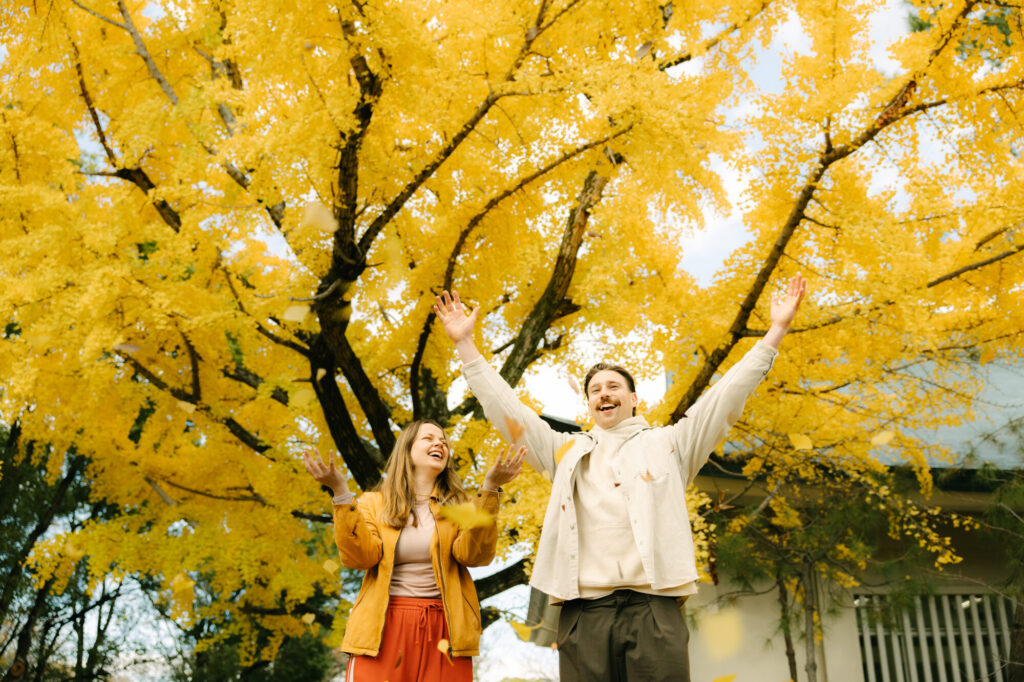 We chose a quiet area within Osaka Castle Park with very few people around, which allowed me to guide them through a variety of poses. They followed every direction perfectly. They walked, ran, carried each other, and moved actively throughout the shoot, showing even more beautiful and natural smiles. Thanks to their energy and chemistry, I was able to capture many amazing photos.
