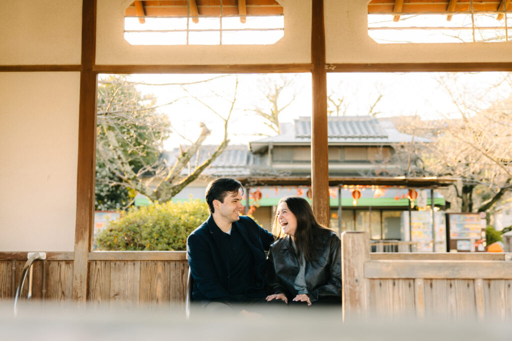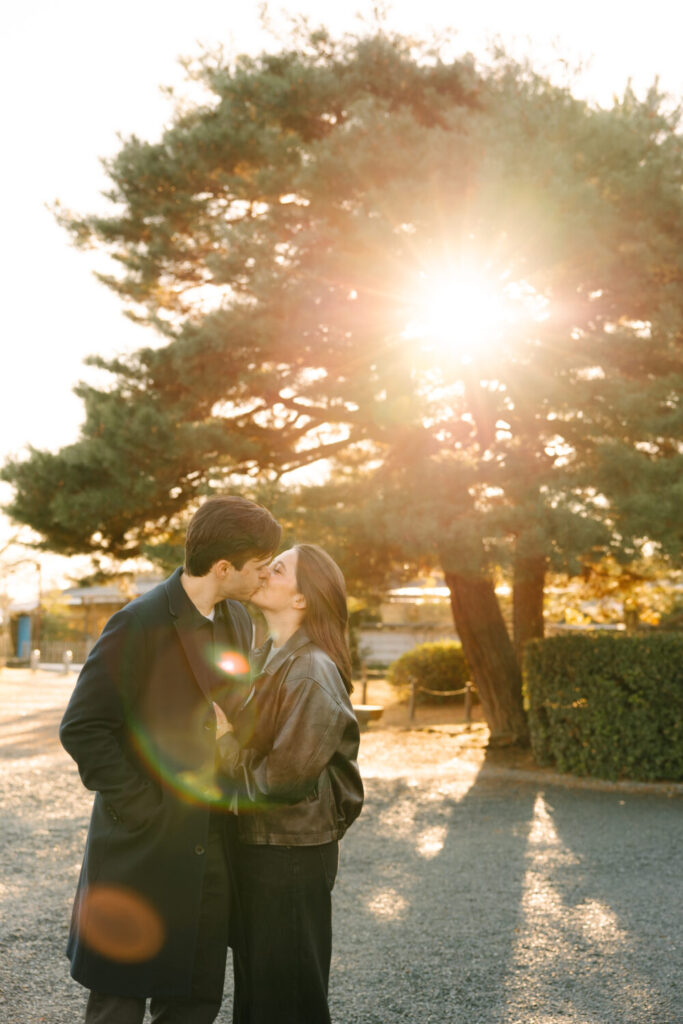 As a Kyoto proposal photographer, I often wake up very early for these special moments, and this morning was no exception. It was a very cold winter morning, but the weather was perfectly clear and sunny. Winter in Kyoto offers very soft and beautiful light, which makes it a wonderful season for a romantic proposal photoshoot.