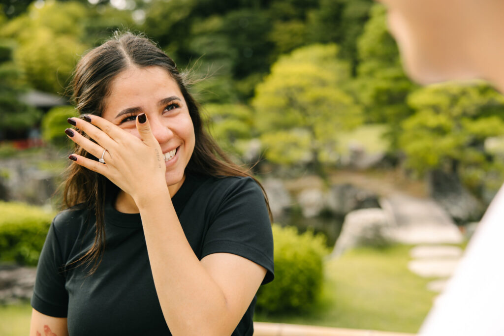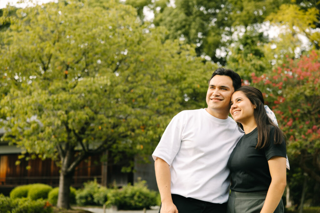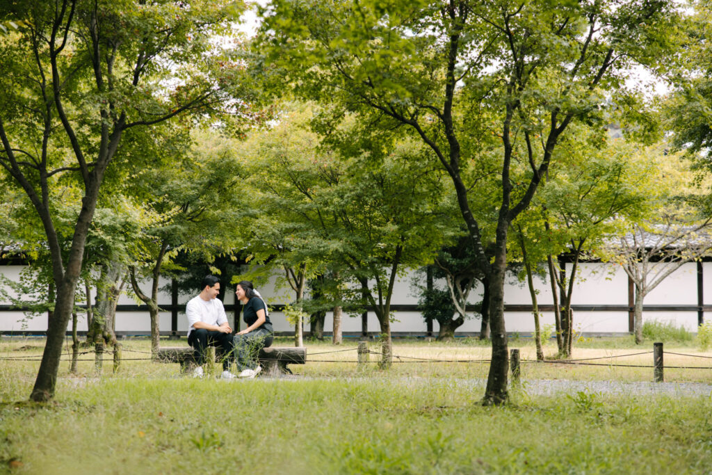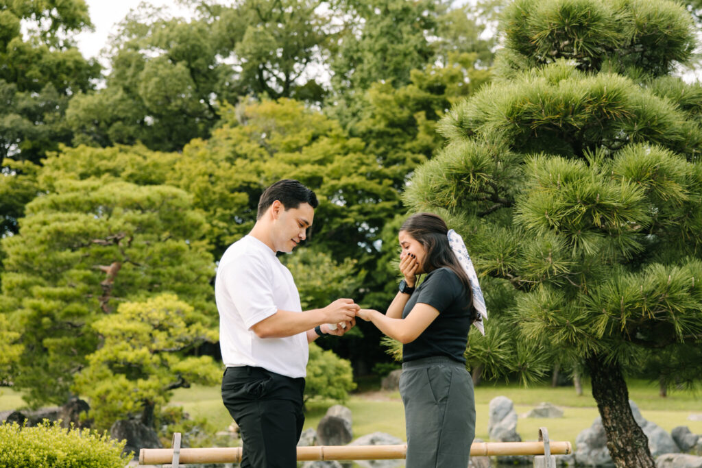 At the end of September, I had the honor of photographing a surprise proposal in Kyoto. The couple planned to propose in the evening at a beautiful Japanese garden, so I arrived early to prepare and wait for them. Since it was a bit later in the day, the garden was less crowded, which made the photo shoot go smoothly.