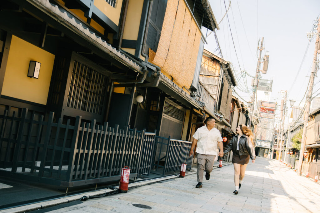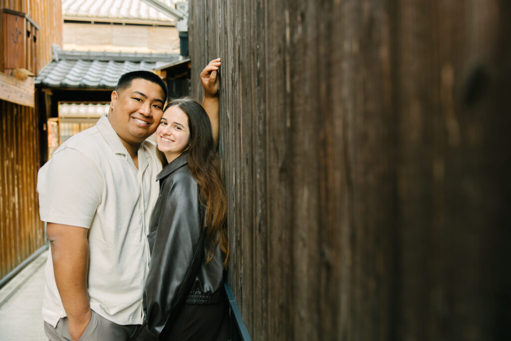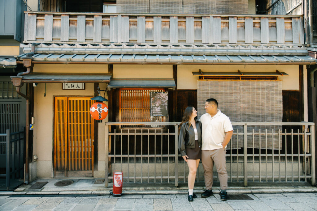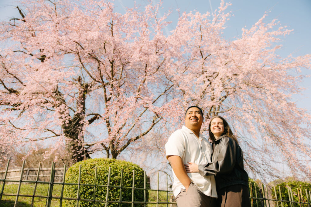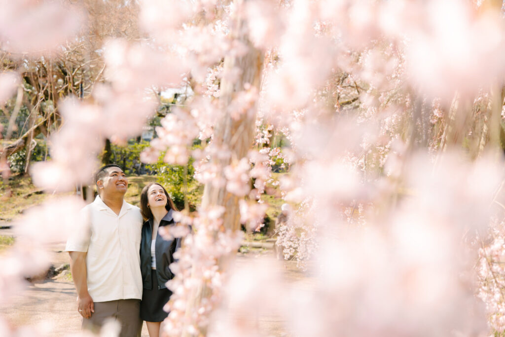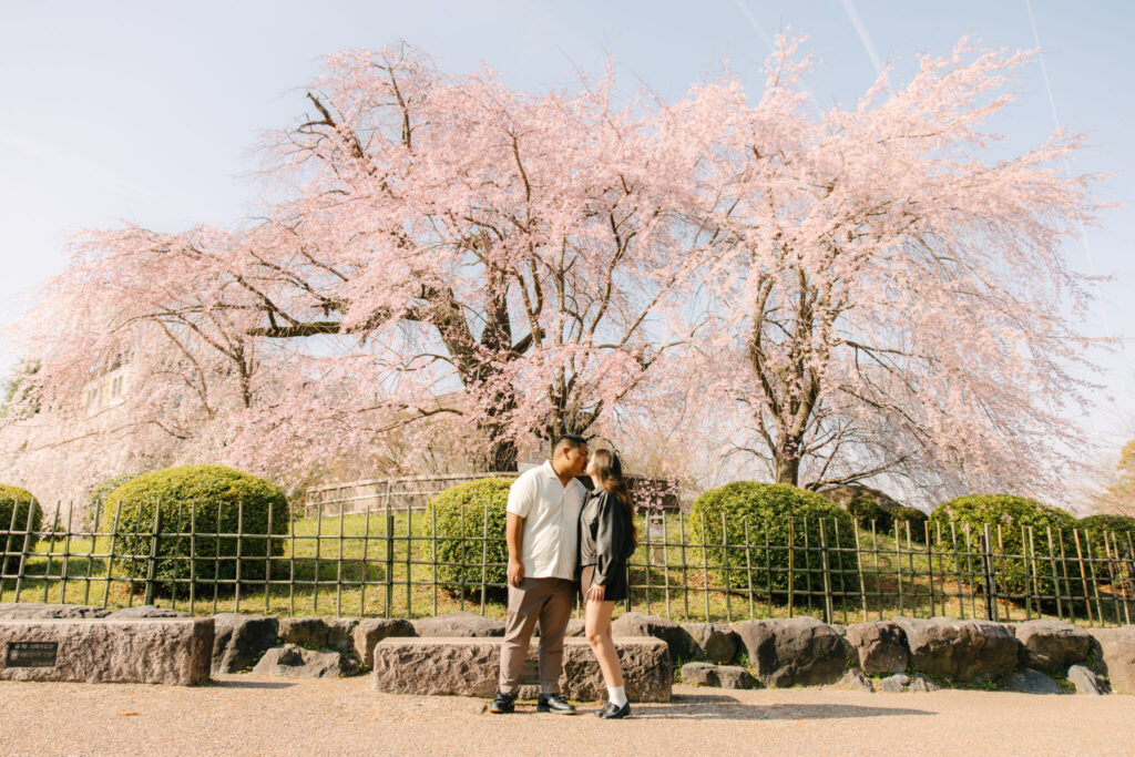 The timing could not have been better. The cherry blossoms were in full bloom, and the weather was perfect, creating the ideal atmosphere for a romantic photoshoot in Kyoto. We started our session in Maruyama Park, surrounded by stunning sakura, and then moved to the charming streets of Gion Shirakawa, as well as a beautiful temple gate for more traditional and iconic Kyoto backdrops.