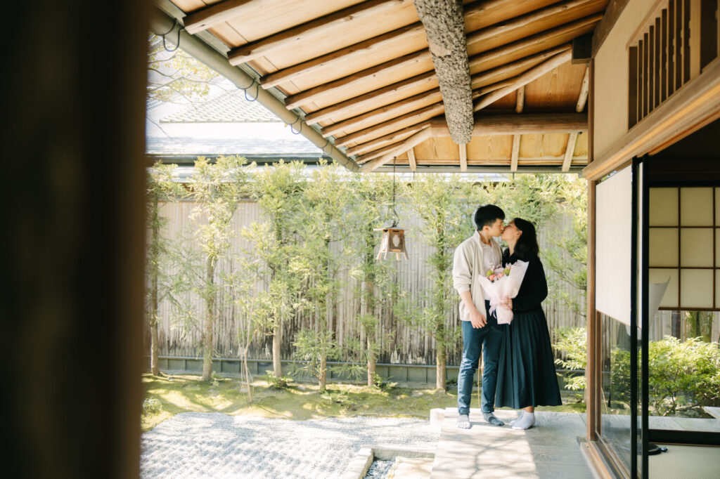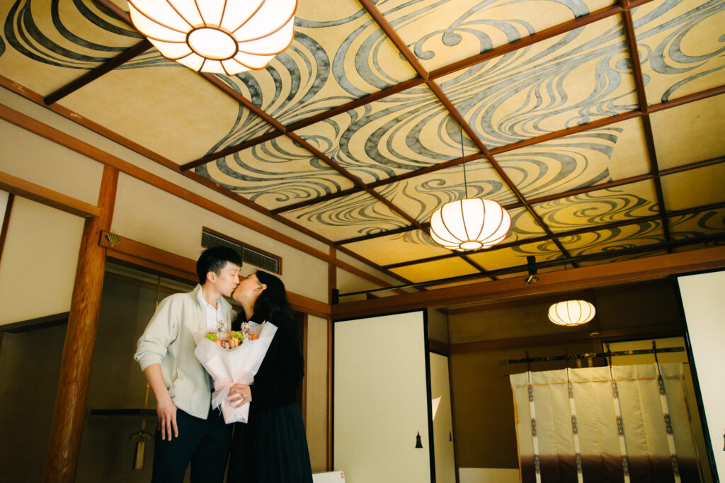 After the proposal, we continued the photoshoot at a traditional Japanese building where they had lunch planned. The location was absolutely beautiful, and the groom had also prepared a surprise bouquet, which made the moment even more emotional and memorable. She was so happy, and the atmosphere was simply perfect.