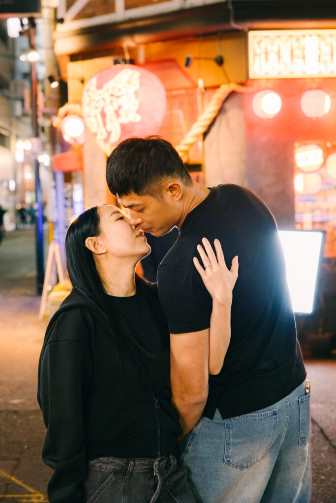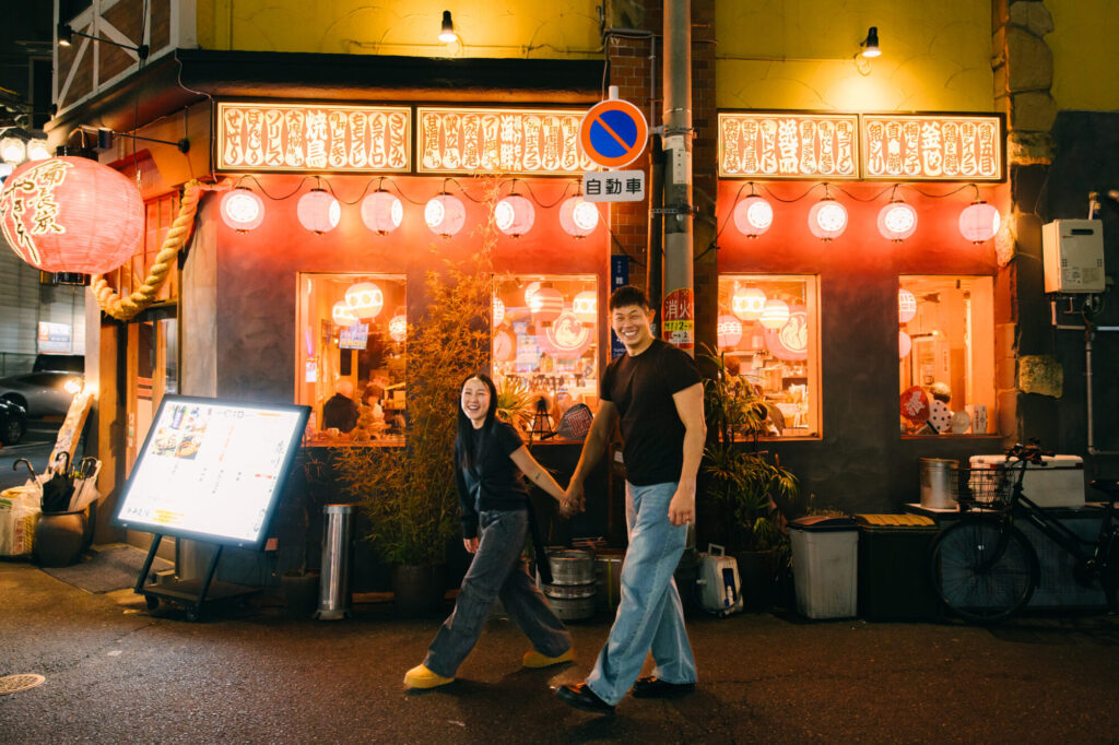 A couple I photographed during their proposal session in Arashiyama returned to Japan and booked another photoshoot with me in Osaka. Their proposal shoot in Kyoto had left such a strong impression on me because we had such a genuinely fun time together. Since then, we had stayed connected on Instagram, so it wasn’t as if we lost touch completely. Still, when they reached out again to book another session during their trip to Japan, I was truly excited and felt incredibly grateful. I had been looking forward to seeing them even before the shoot day arrived.