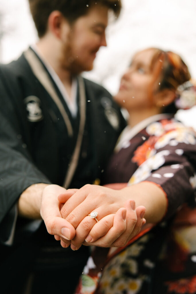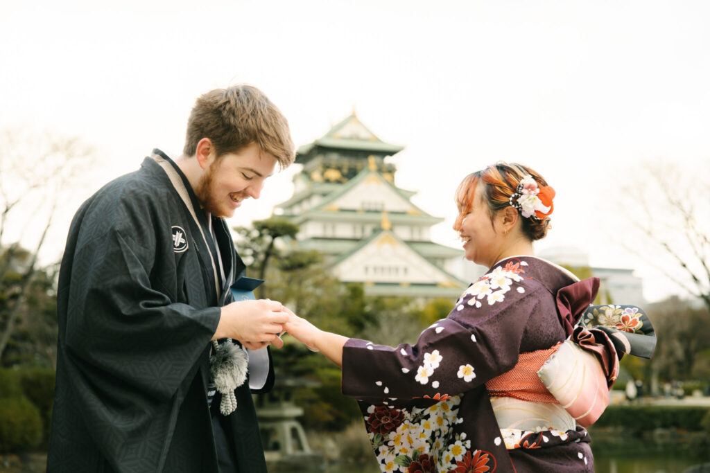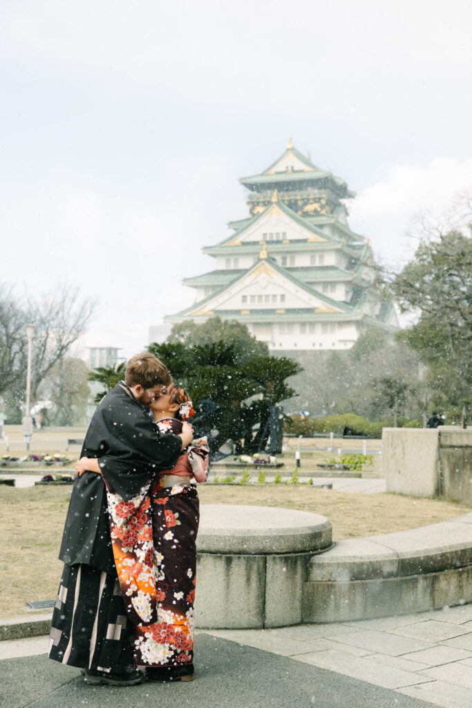 The combination of kimono, snow, and Osaka Castle created unforgettable proposal photos in Japan. It became a very memorable day for the couple and also for me as their photographer.