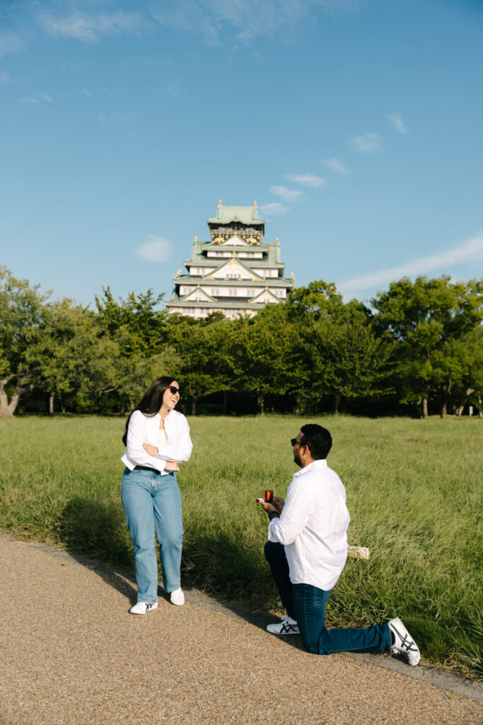 After the proposal, we continued taking photos with the stunning sunset light and with Osaka Castle as a beautiful backdrop. The couple loved every single shot, and I was thrilled to capture so many wonderful memories.