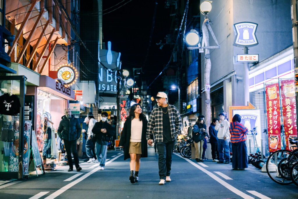 Later, we met again in the evening for a second shoot in the Namba area. The city lights, neon signs, and lively atmosphere of Osaka created a completely different mood from the daytime session. They enjoyed every part of the shoot and were happy to try all the ideas and poses I suggested.