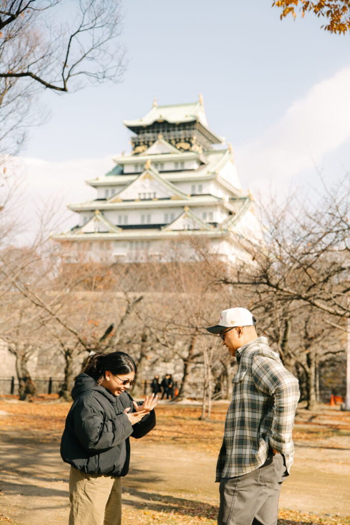 I had the pleasure of photographing a lovely couple’s surprise proposal at Osaka Castle Park, followed by a night photoshoot in the vibrant streets of Namba and Dotonbori in Osaka.