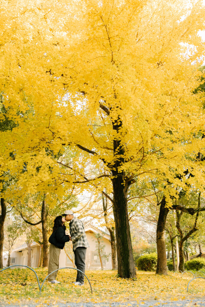 It was the perfect season, with the ginkgo trees turning bright yellow around the park. The scenery was stunning, and we captured their proposal in a truly beautiful setting. They loved the photos, and I was very glad to see how happy they were with the results.